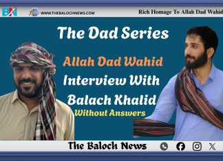 The Baloch News (TBN) has approached Awaz Wahid, elder brother of Allah Dad Wahid, for an interview about Allah Dad in the ongoing “The...