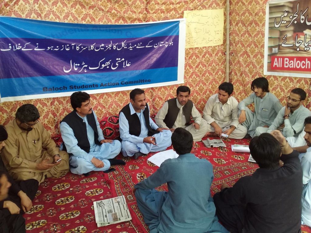 Baloch Students Action Committee (BSAC) and medical students had set up a hunger strike camp in front of Quetta Press Club for making the new medical colleges functional.