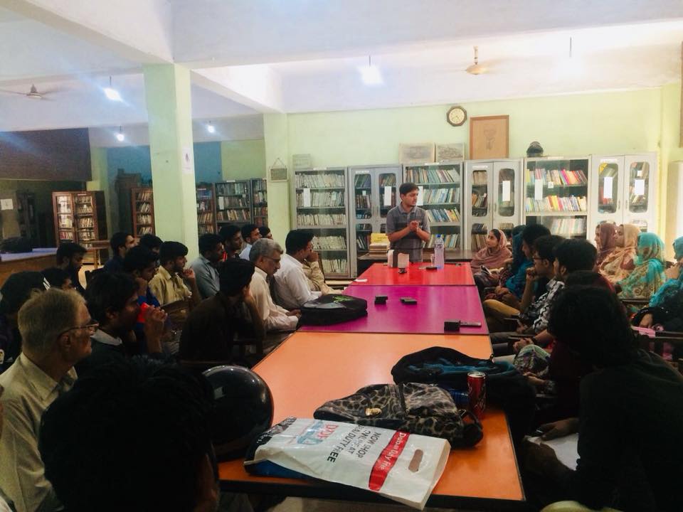Lyari Literary Forum (LLF) conducted its third literary program in Mullah Fazul Library on 12 May 2018, the topic was ” When Art friend Divorced from Reality “ by Sir Aurangzaib. Sir Aurangzaib is a lecturer at University of Karachi (UoK) in Department of Philosophy.