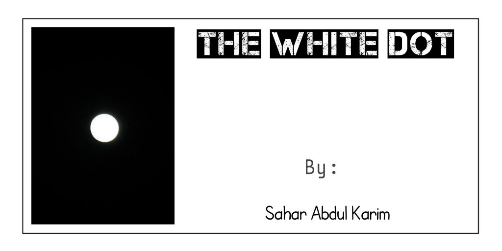As I reached nearer, it grew larger. I took off the cloth. It was a white dot, very large, but its colour had vanished. I entered the dot and suddenly felt it is where I had come from. But it was full of dust, stones of hatred, barrels of evil and screams of unknown. I could only see the colours red and black_the colours of hatred and injustice? Why was that white dot so dirty and nasty? Why did I feel no unity in it?