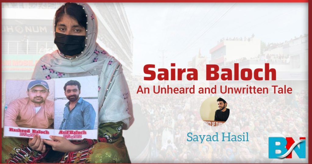 In the rugged terrain of Balochistan, where the mountains echo stories of resistance and suffering, there exists a young Baloch girl whose voice reverberates with pain and determination. Saira Baloch, a name may be known and unknown to many, represents an untold saga of grief, defiance, and unyielding courage. Her story embodies the collective anguish of a land scarred by violence and suppression.