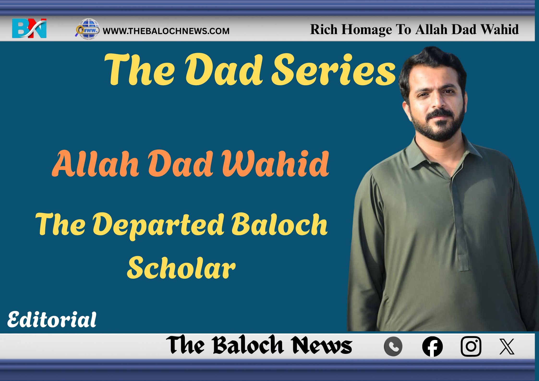 To pay homage to Allah Dad Wahid on his first death anniversary (Feb 4), we are open to write-ups on Dad, his life and struggle, and his personality. We will also consider write-ups against extrajudicial murders, Baloch intelligentsia (absence, challenges and growth) and anti-Baloch narratives concerning the above. Email us your writings at [email protected]