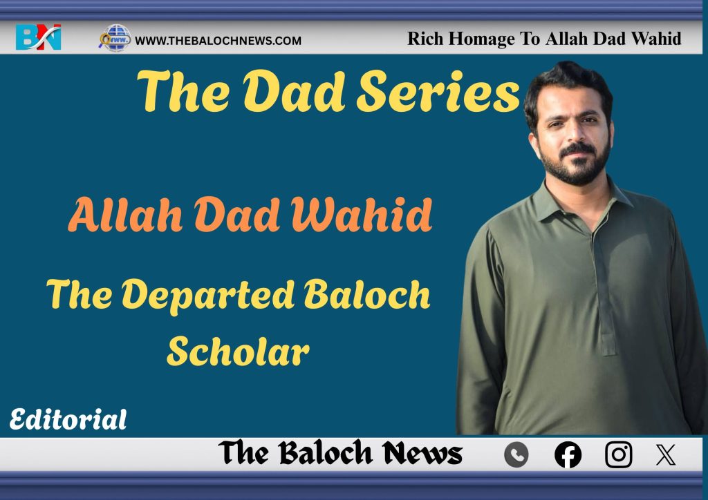 To pay homage to Allah Dad Wahid on his first death anniversary (Feb 4), we are open to write-ups on Dad, his life and struggle, and his personality. We will also consider write-ups against extrajudicial murders, Baloch intelligentsia (absence, challenges and growth) and anti-Baloch narratives concerning the above. Email us your writings at editorial@thebalochnews.com