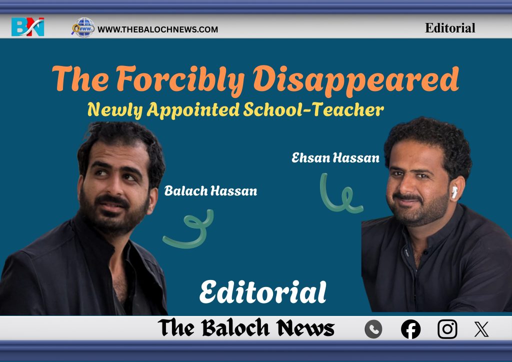 Balach Hassan and his brother Ehsan Hassan (Ehsan is a mobile-shop owner despite being a graduate of the University of Turbat’s Biotechnology Department) were allegedly forcibly disappeared by the personnel of the notorious “Counter-Terrorism Department” on the midnight of January 21 and 22 at around 1. Since then, they have been shifted to an unknown location which is not even disclosed to their family. A day after their “illegal arrest and detention”, Balach was shortlisted for the post of JVT in the area to serve as a teacher in a school in Jiwani. For the very same purpose, he had to be physically present in the office of the District Education Officer to receive his nomination letter. But he is imprisoned in a location and under charges no one knows – or therefore he is forcibly disappeared because there are no actual charges against the duo.