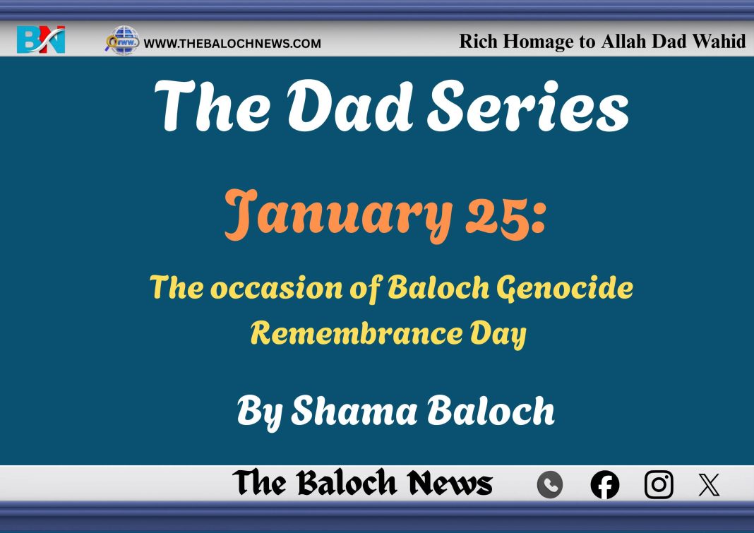 In January, 2024, at a historic gathering at Saryab’s Shahwani Stadium, January 25 was formally designated as “Baloch Genocide Remembrance Day”. The purpose of this day is to inform the world about the ongoing genocide of the Baloch people and highlight the urgent need for collective struggle for the survival of Baloch nation.