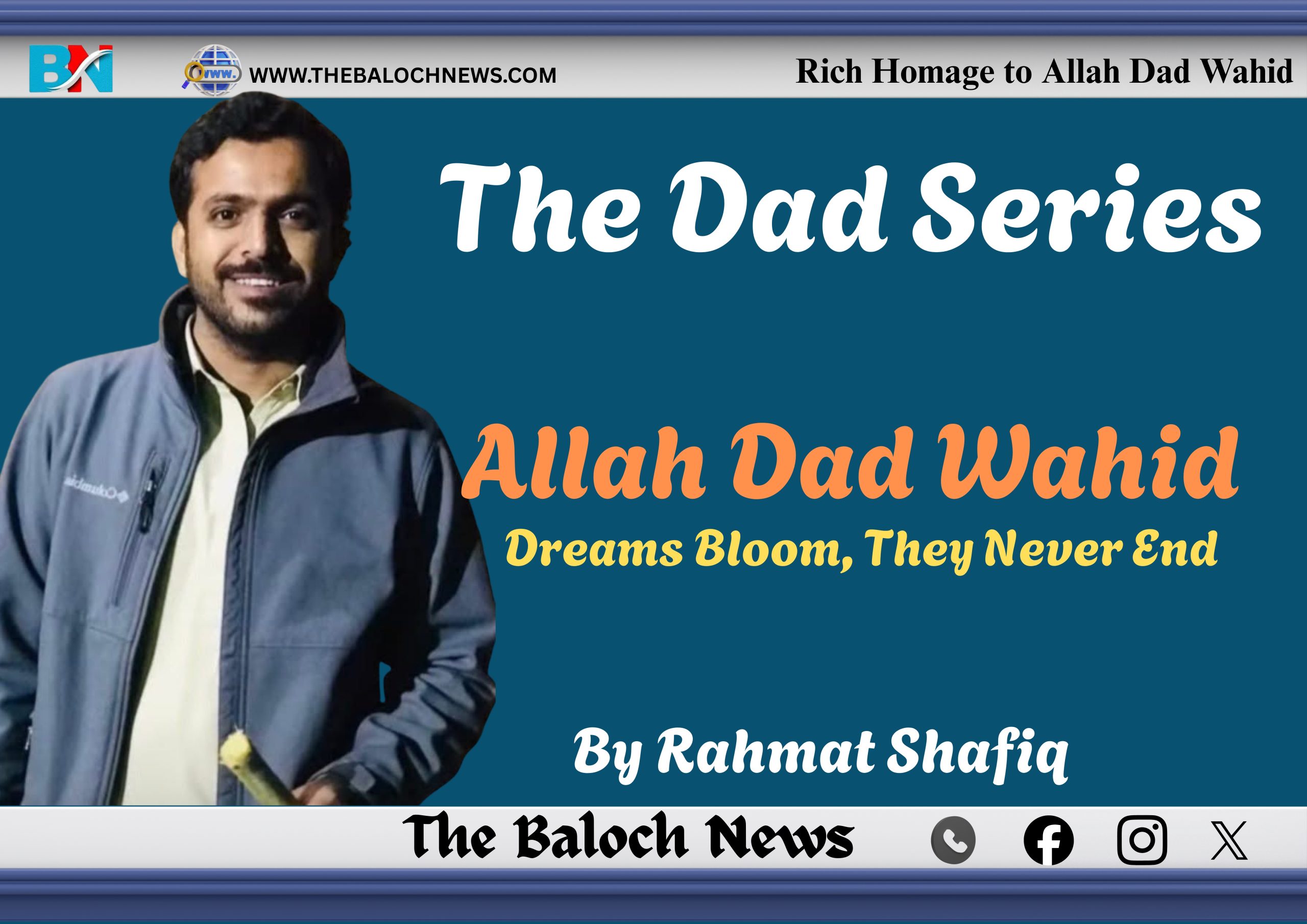 Everyone dreams, but Allah Dad Wahid had dreams for the Baloch. What makes a person alive are those dreams which never die, no matter if the dreamer is no longer among us. On this date, 4 February, Allah Dad Baloch should not be just remembered; rather, the collective dreams he had for the nation should be carried out. This makes the Baloch intellectuals live forever.
