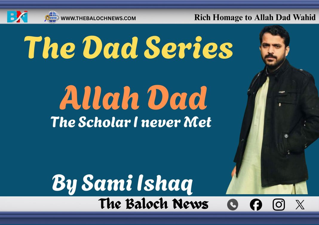 I never got a chance to meet Allah Dad in person, nor did I knew him and his struggle closely, but I truly admire and respect his entire intellectual struggle he carried out during his short-but-healthy life. Some people are known through meetings, and some through their thoughts. Allah Dad belongs to the second kind — a person whose identity lives in his struggle in the field of Balochi literature.
