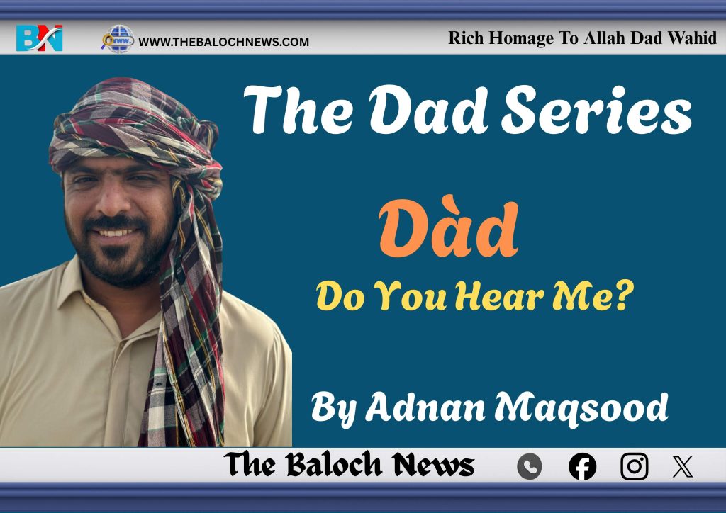 Dàd, do you know, the society and your friend circles are damaged after losing you? The streets I take to the society sometimes make me feel like chanting your names in silence. Because they speak a language different than ours. The market places we traveled on bike still await in deep emotions and wants to hear more about the Baloch and Balochi Language. The market shops, who sell books, still wait for your cheap books so that they can make better profit out of your amazing and unbelievable aims of making Balochi literature accessible to everyone. As no one offers a book so cheap as you did.