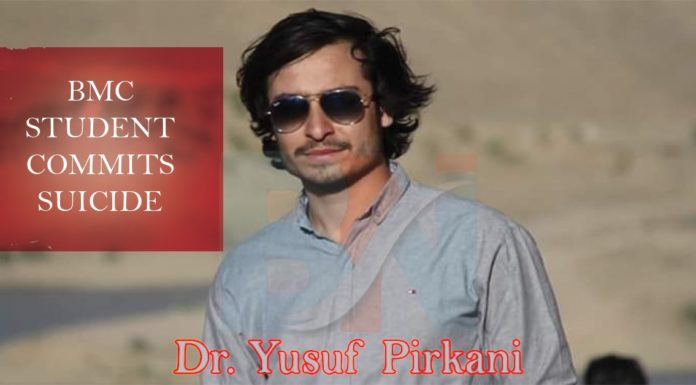Another medical student commits suicide; My beloved Student and Friend Dr. Yusuf Pirkani was a very kind hearted and respectful person ... Ever since he Joined Bolan Medical College, he was a victim of great many stresses; medical studies,...